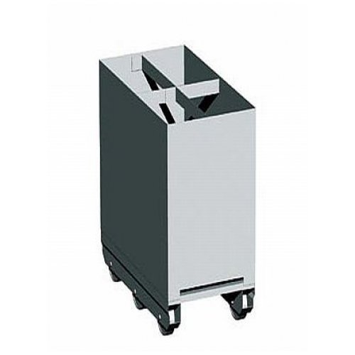 Rauchspießwagen geschlossene Form mit Ablaufschlitzen Edelstahl Werkstoff 1.4301, Oberfläche Rundschliffgeschlossene Form mit Ablaufschlitzenmit 6 Rädern auf Kippmoment für ca. 200 Rauchspieße Abmessungen: 400 x 600 x 720mm Artikelnummer: 3360200